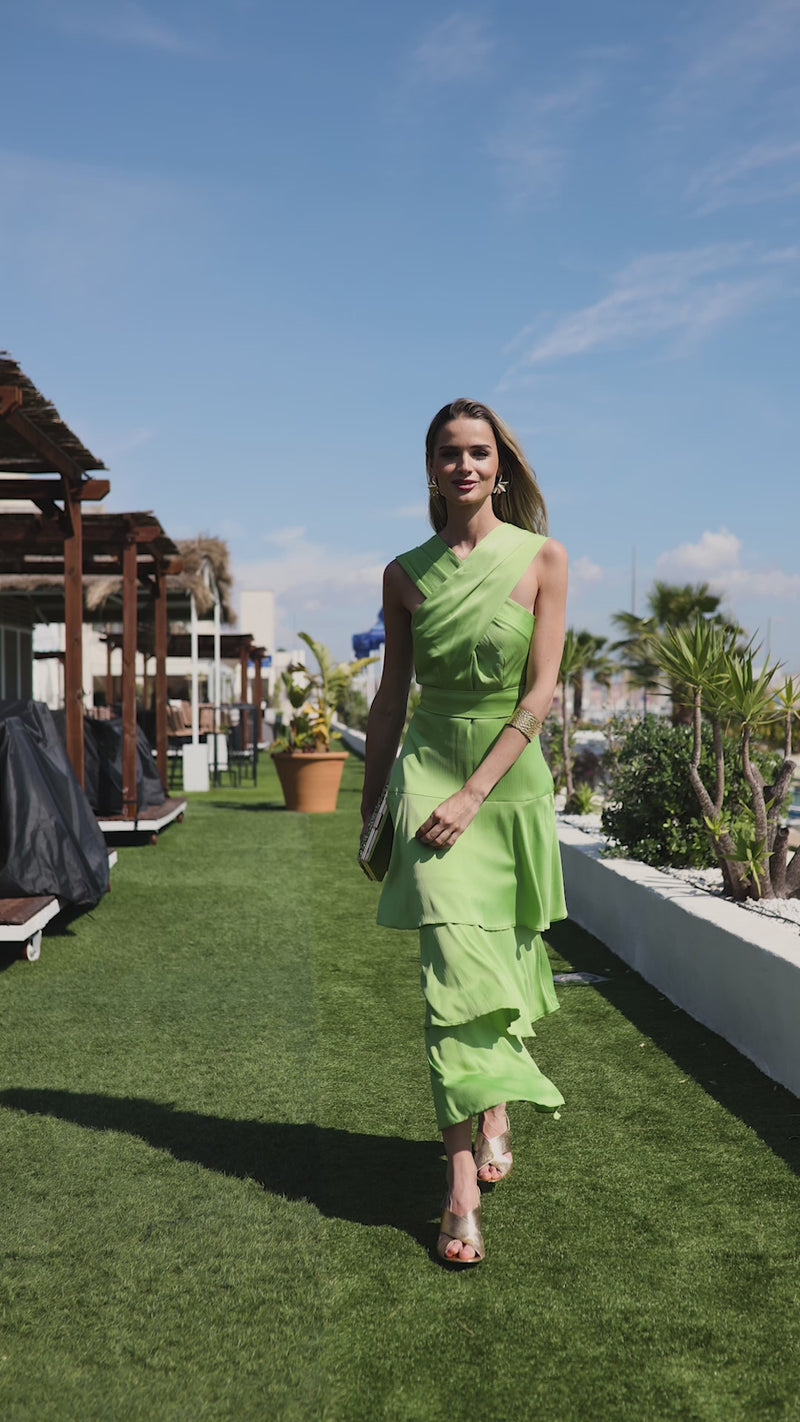 Queríamos fazer um vestido curto de convidada que ficasse lindo, e este modelo é o seu preferido em todas as estações. Este ano reinventámo-lo com algumas modificações mas com a sua essência habitual. Decote halter cruzado e o tecido que você vai se apaixonar só de tocar.