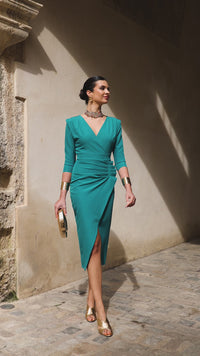 Vestido midi tulipán manga francesa petróleo
